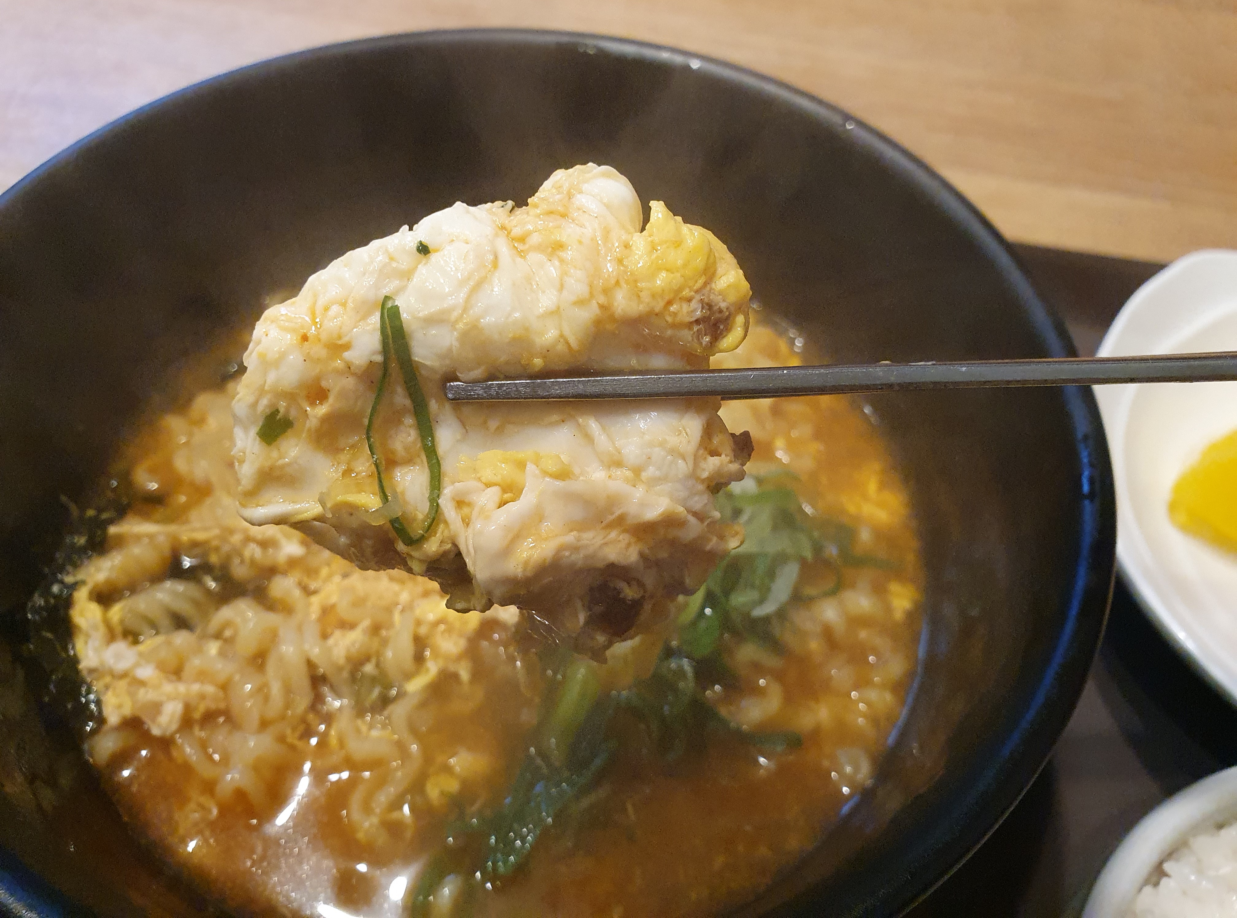 라면의 매콤함을 부드럽게 잡아줄 계란도 분명 1개 들어갔을 텐데 양이 많아보였어요