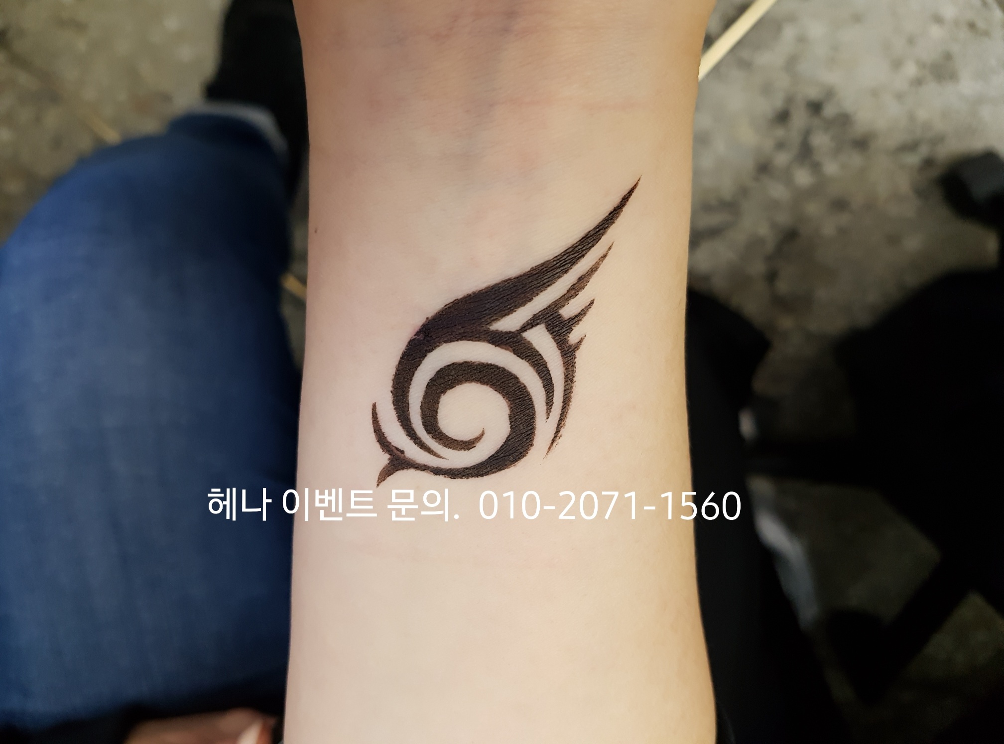 행사나 축제에서 진행해드리는 방법은 '그리는 헤나'가 아닌 '스티커 헤나' 입니다