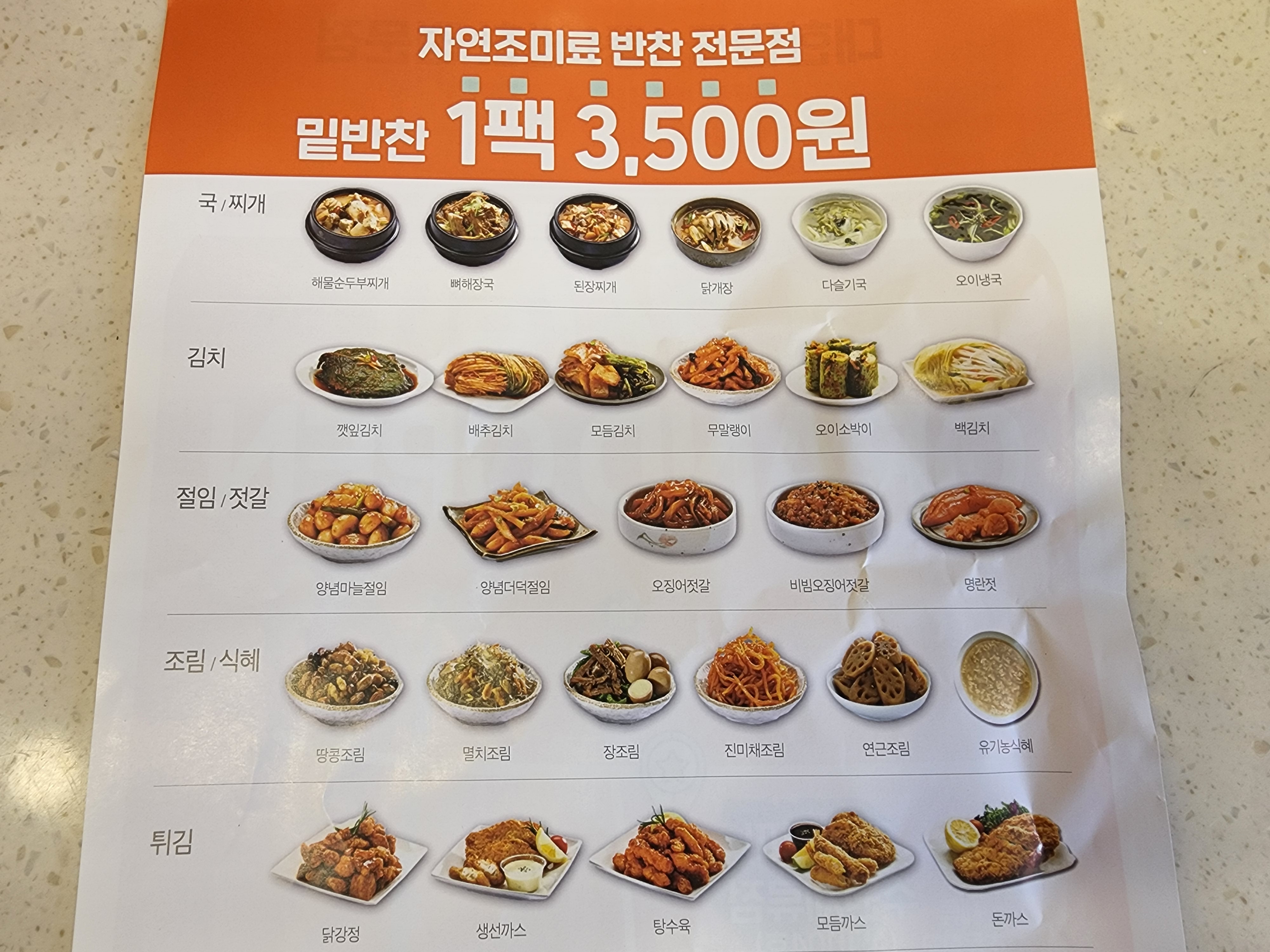 밑반찬 1팩에 3,500원이에요