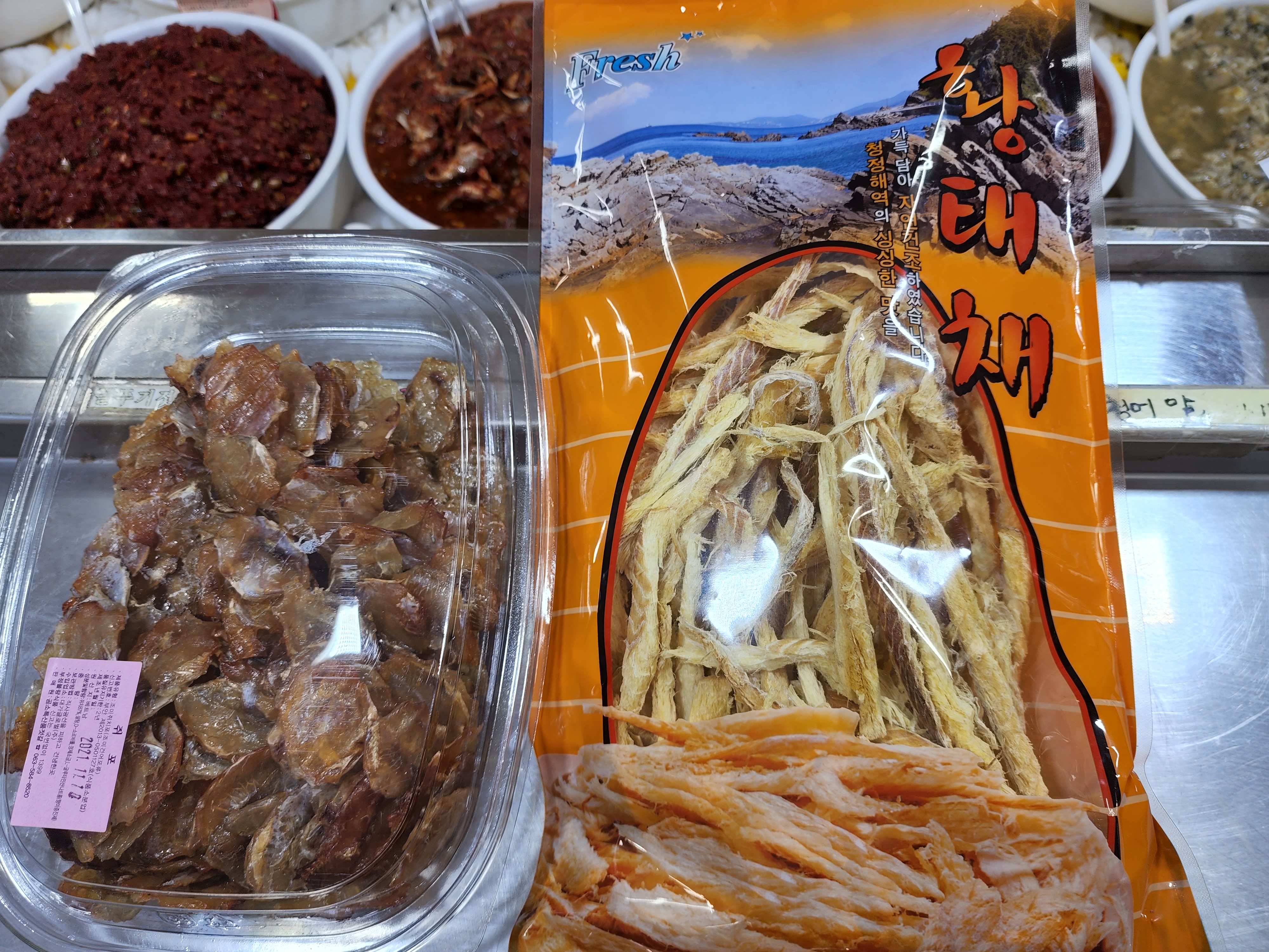 갈치속젓을 구입하고 황태채와 쥐포를 추가로 구입했습니다