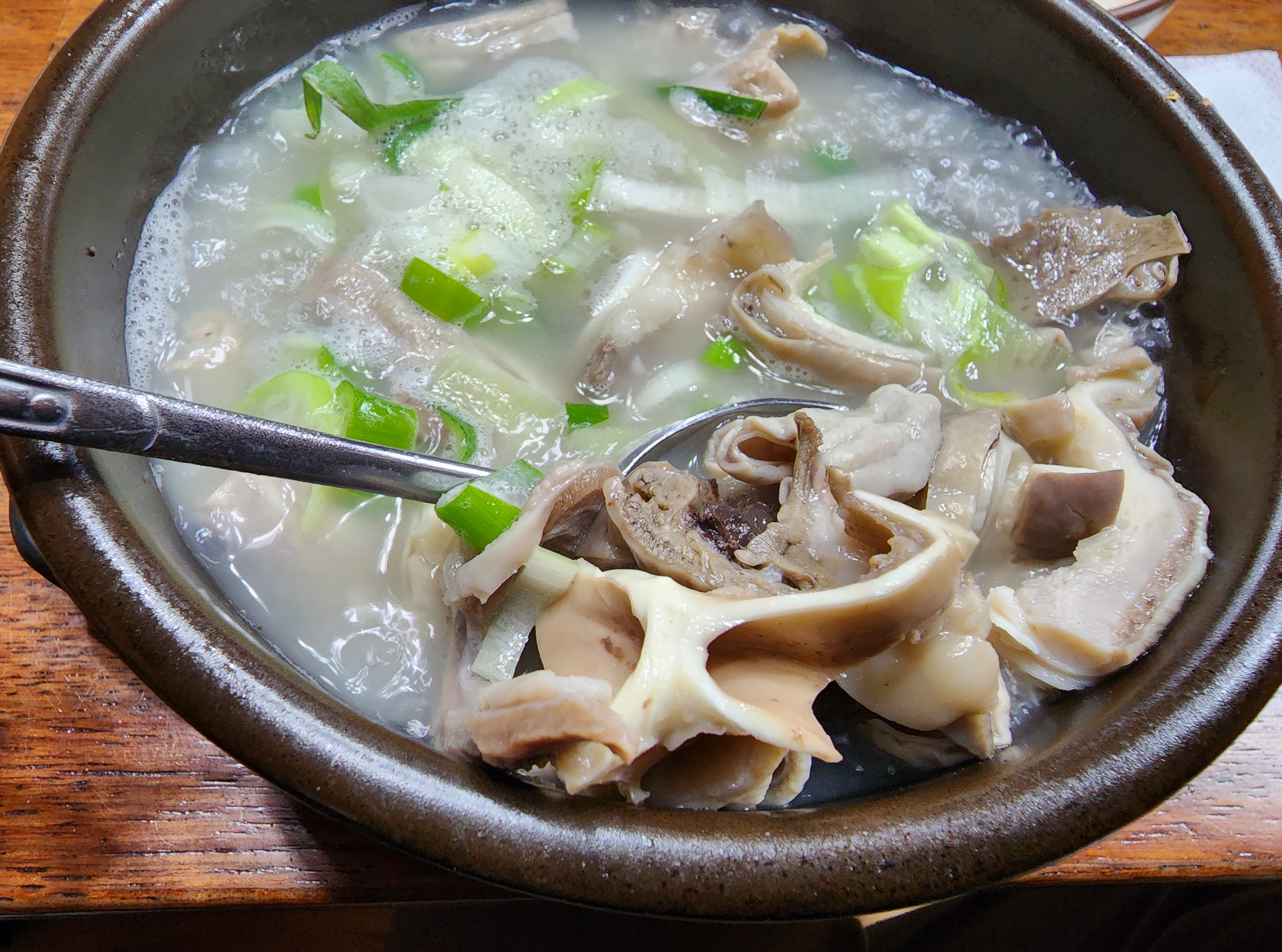 김이 모락모락 나는 국물을 한숟가락 떠서 입에 넣는 순간, 진한 국물 맛이 가슴 깊은 곳까지 쭉 내려가면서 순식간에 속을 따뜻하게 데워줍니다