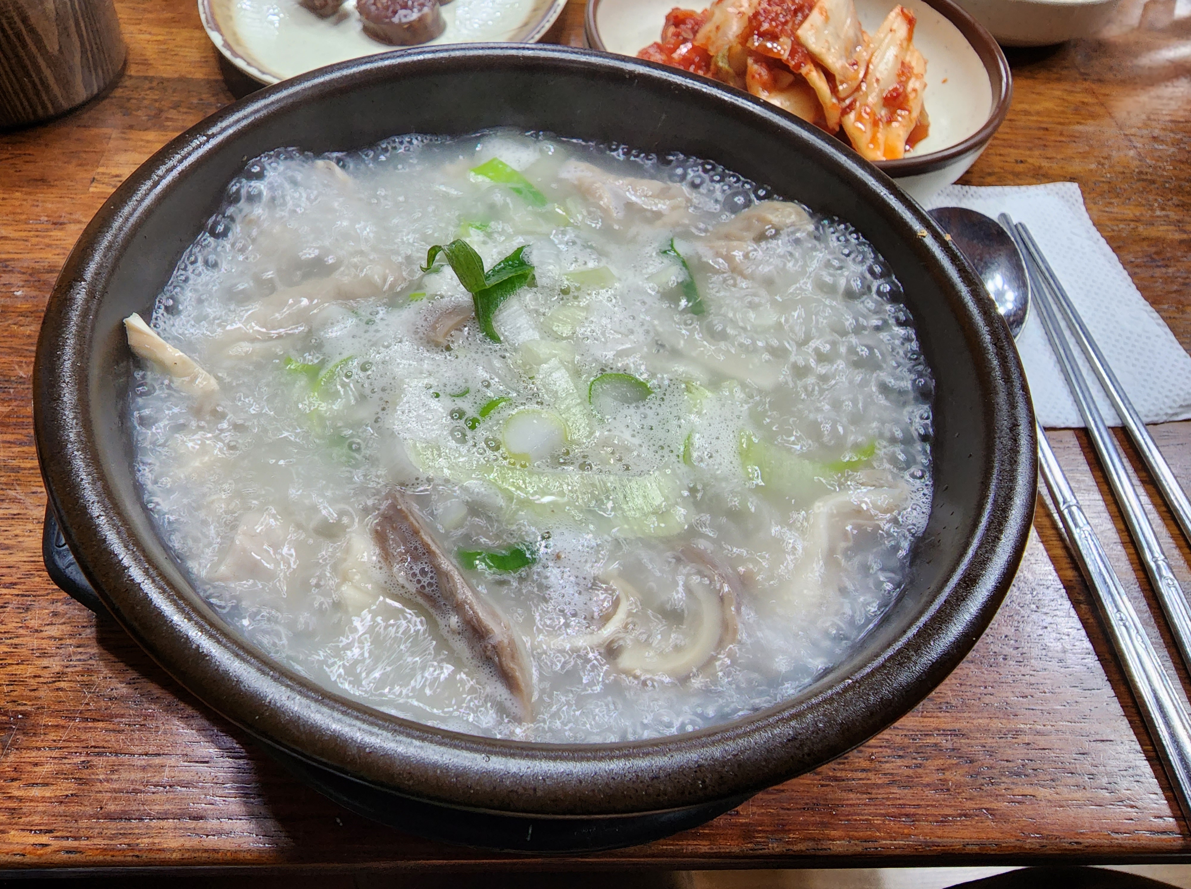 순대와 김치, 깍두기를 홀짝홀짝 먹고 있을 무렵, 보글보글 끓는 뚝배기에 메인 음식이 짠 하고 등장했어요