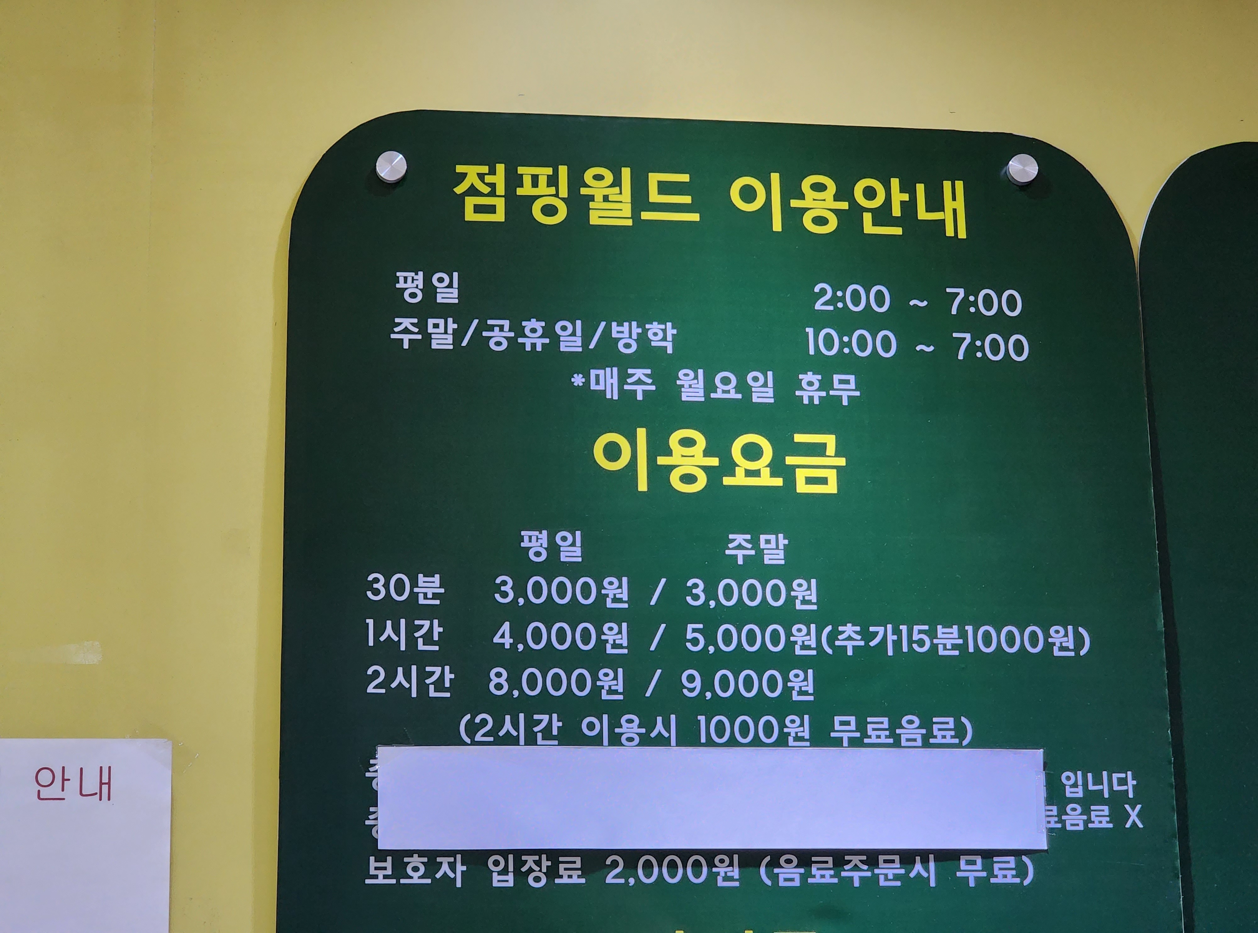 아담하지만, 편의시설은 다 있고 방방장이 넓게 잘 되어 있으면서 가격은 저렴한 점핑월드! 정말 좋아요