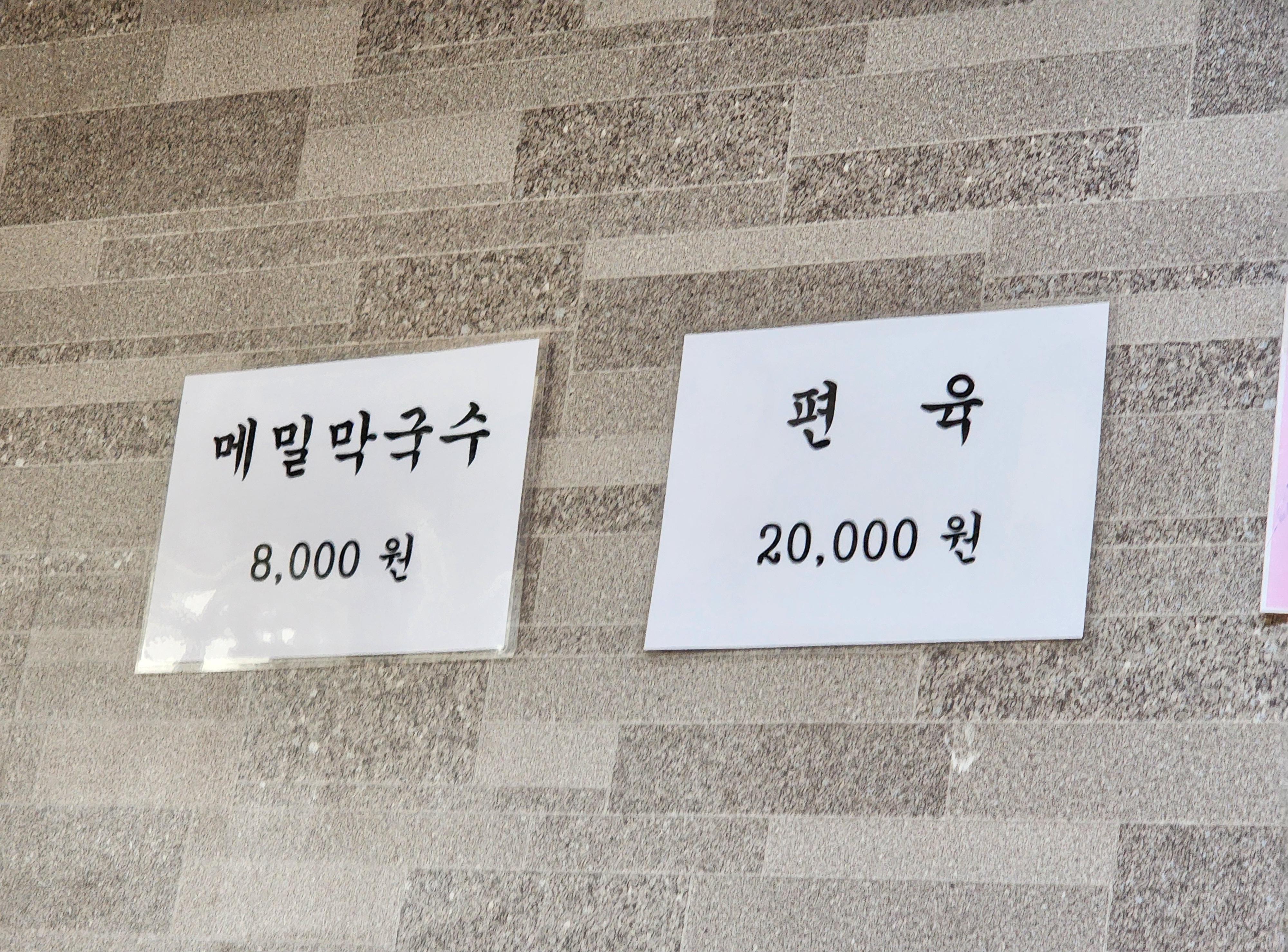 누구나 그렇겠지만, 막국수는 방문한 인원수대로 편육은 나누어먹을 것을 감안해서 1판 주문했어요