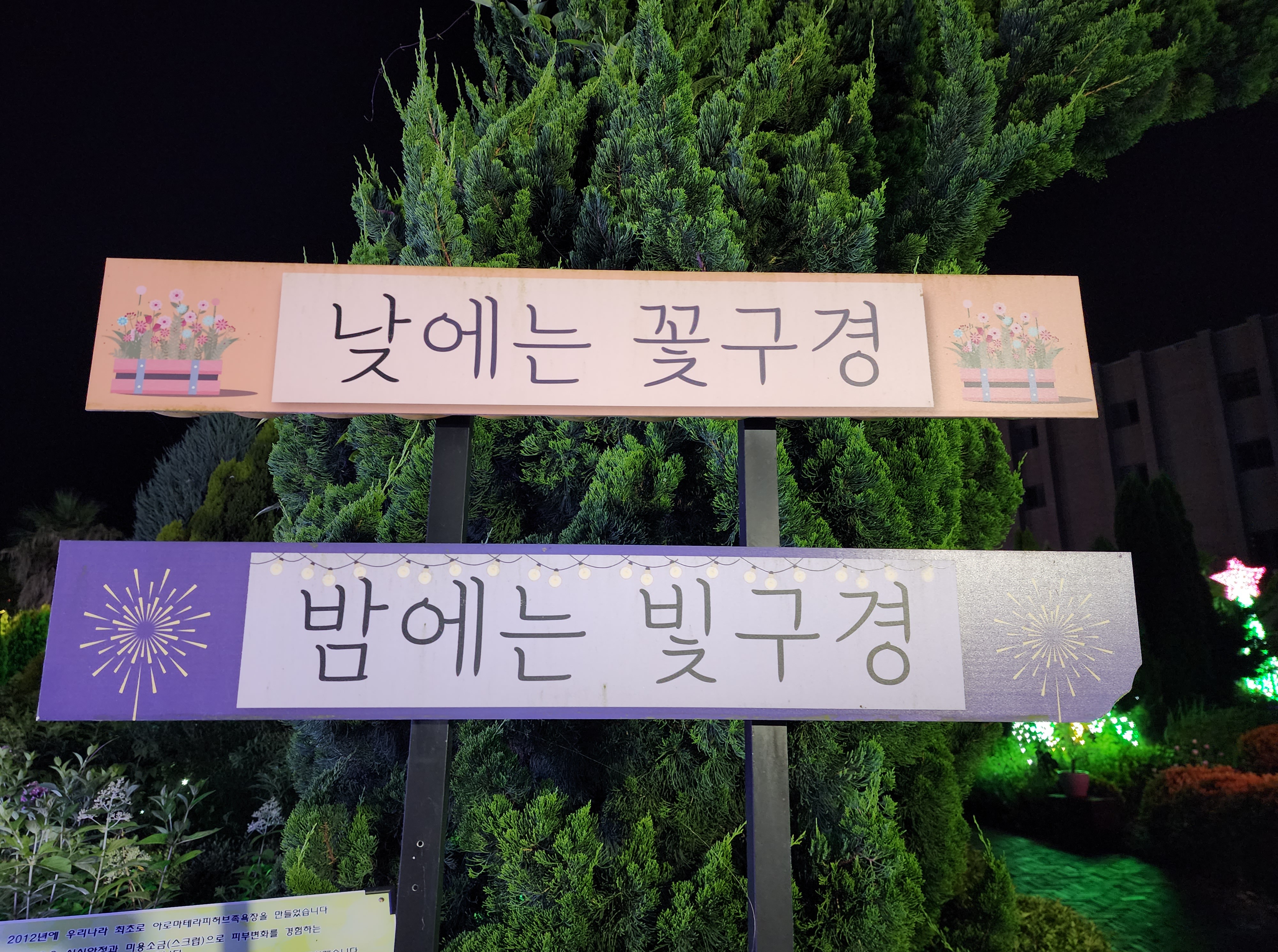 낮에는 다른 곳과 별반 다르지 않는 꽃천지 동산이에요