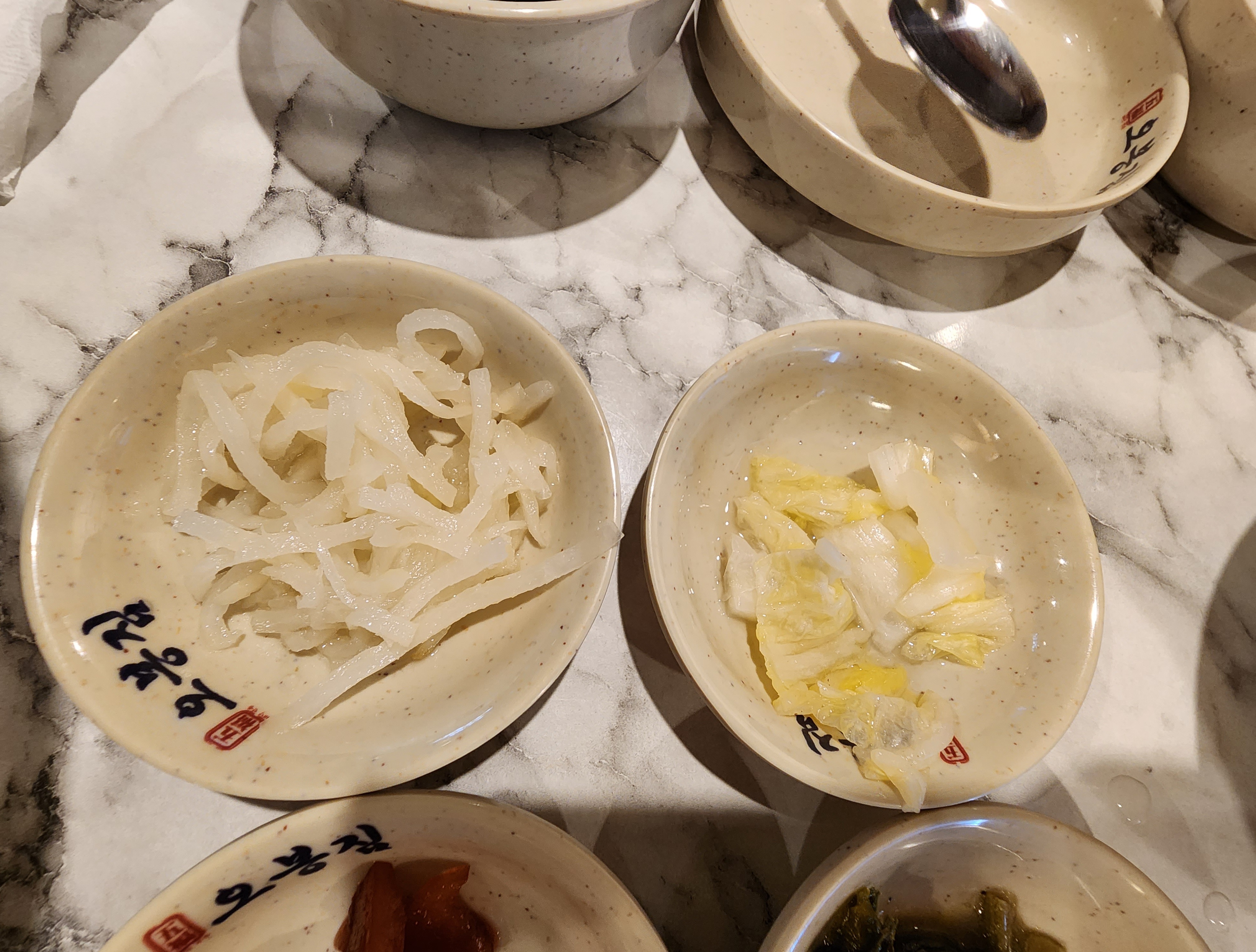 백김치도 있고 무채도 하얗게 해서 나오는데 이 또한 식감들이 좋은 반찬들이잖아요