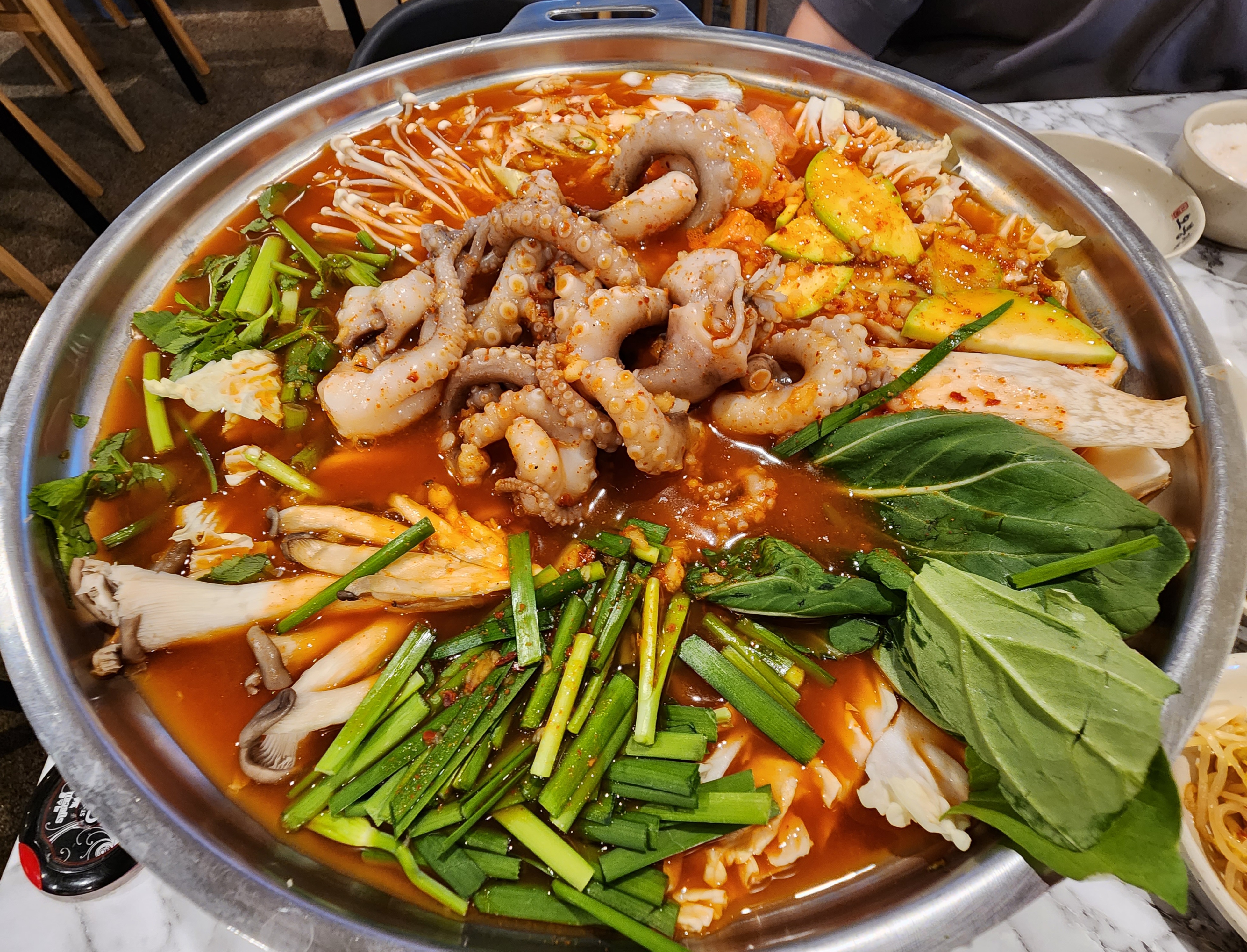 볶음보다 국물 요리가 당겨서 전골로 주문했더니 국물에 채소. 낙지가 너무 맛있는 거에요