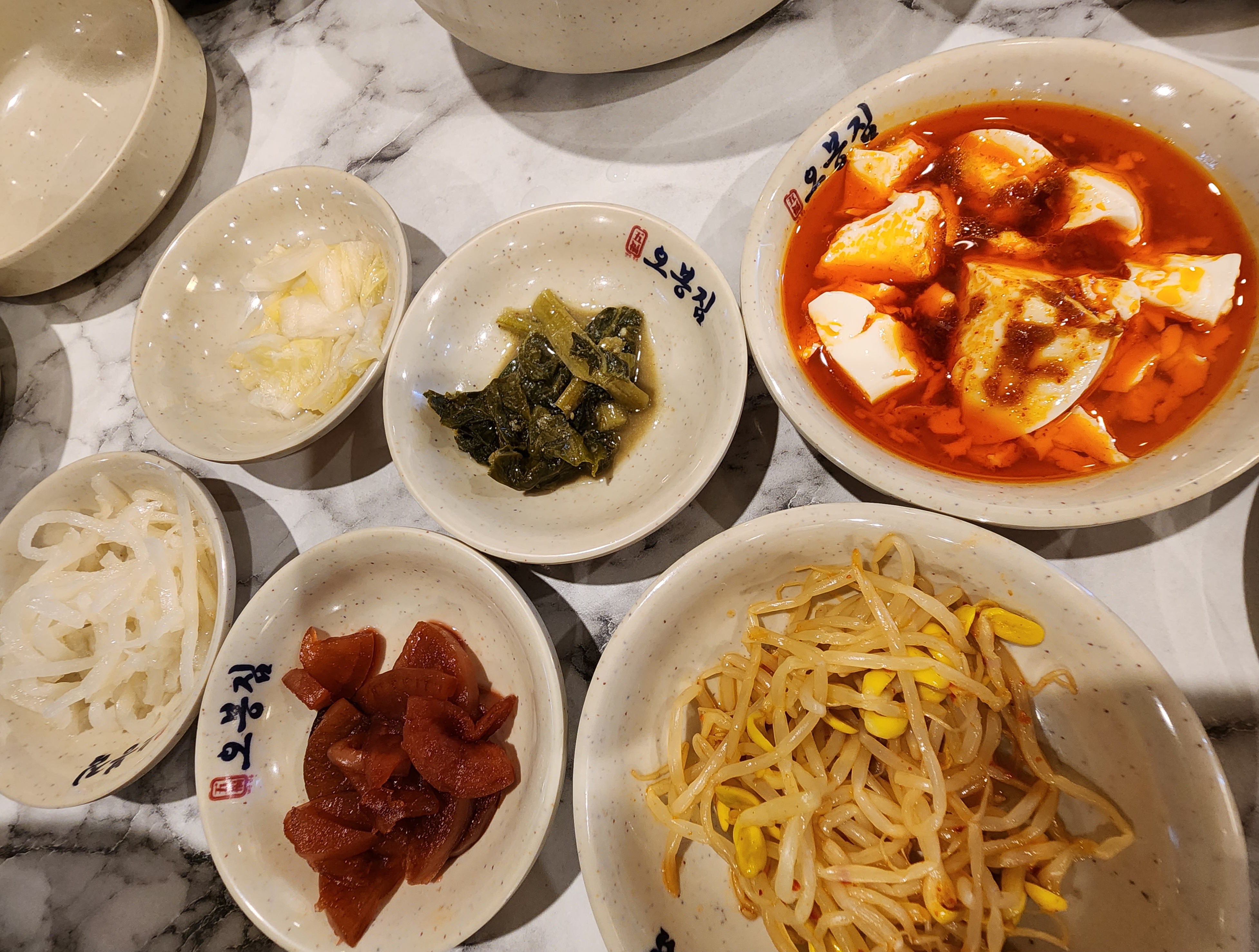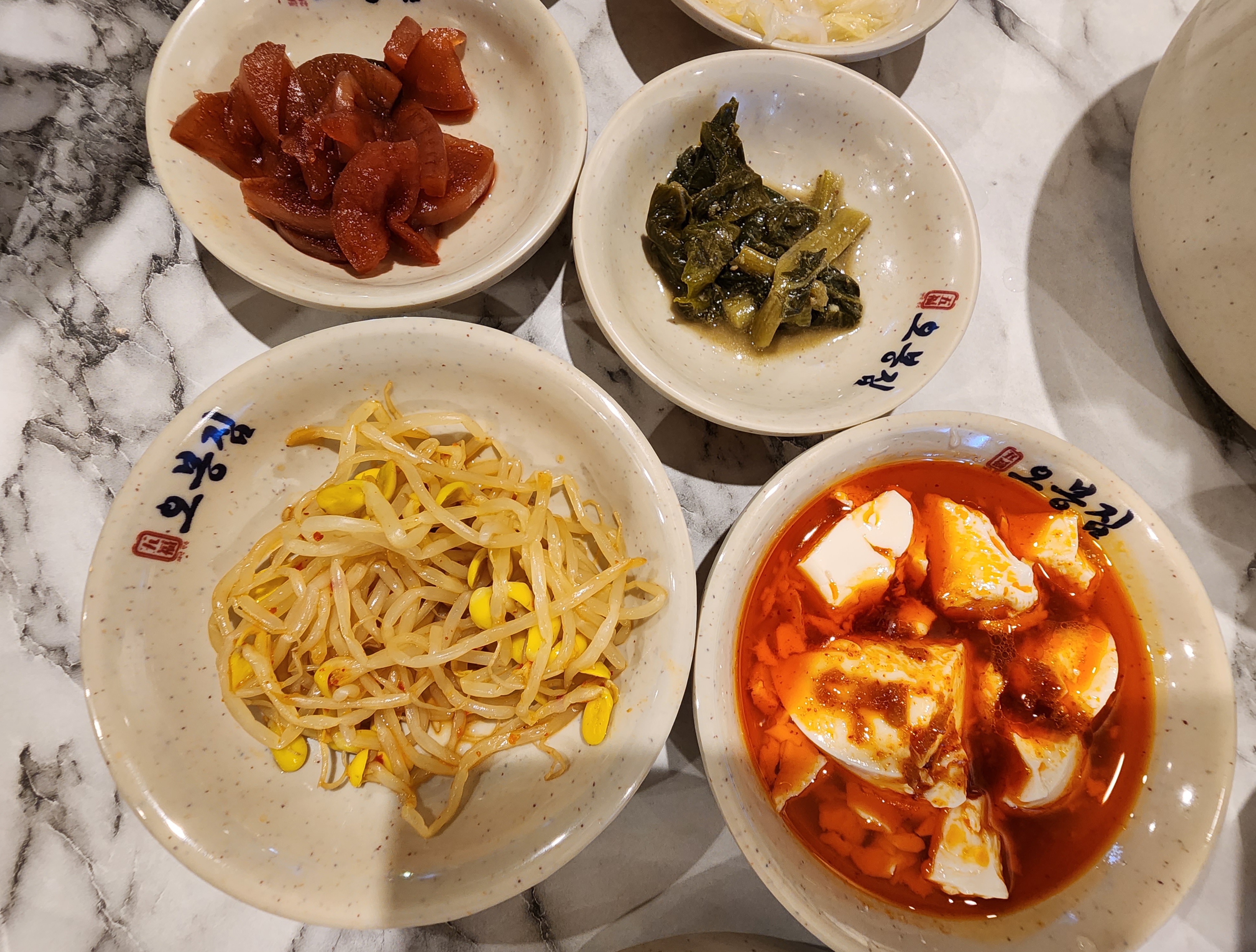 매콤한 전골을 상쇄시켜줄 하얀 반찬들이 인상적이에요