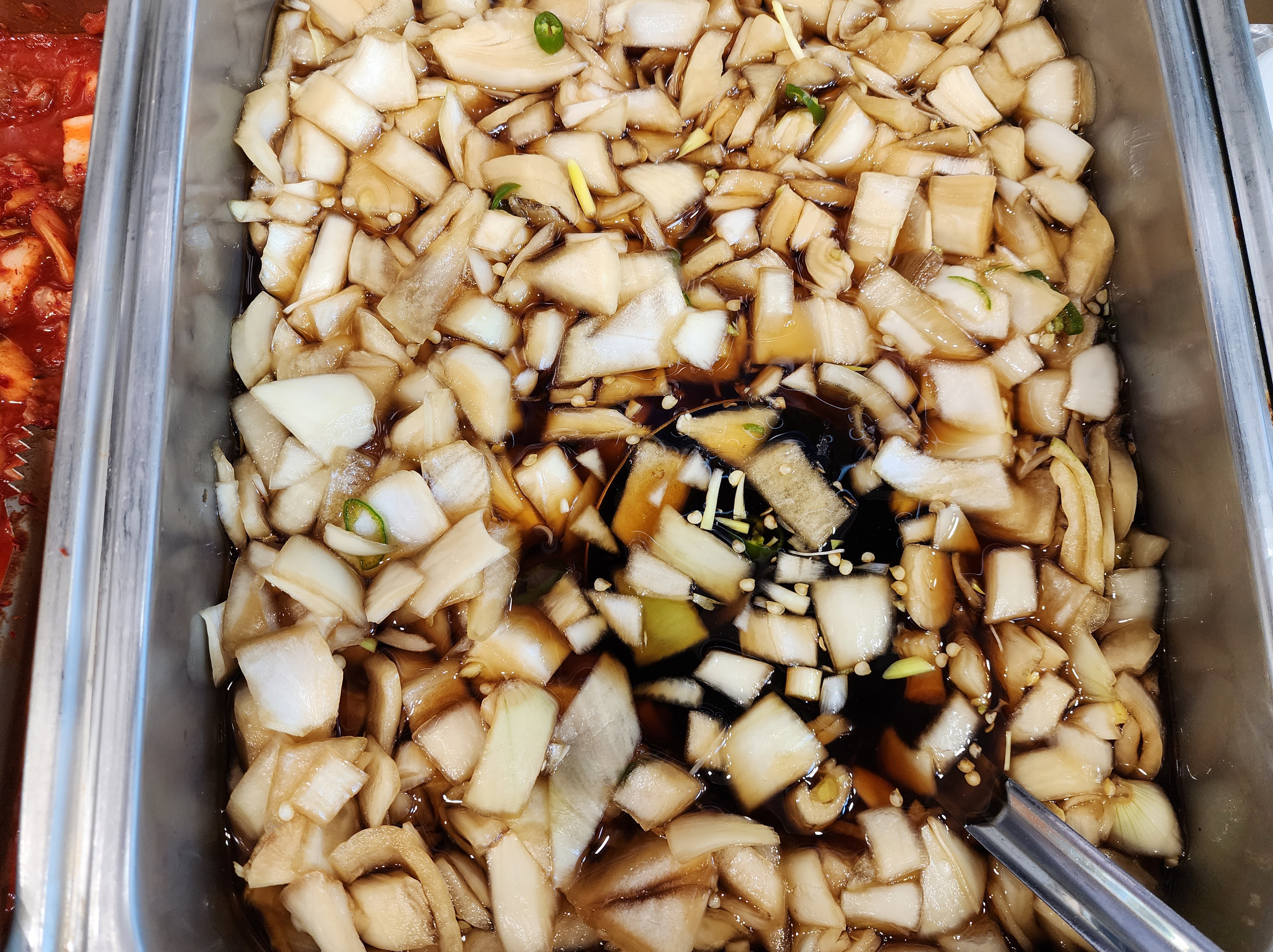 쫄면과 함께 나오는 국물이 있는데요, 유부가 들어가서 동동 떠있는 국물도 맛이 기가 막힙니다