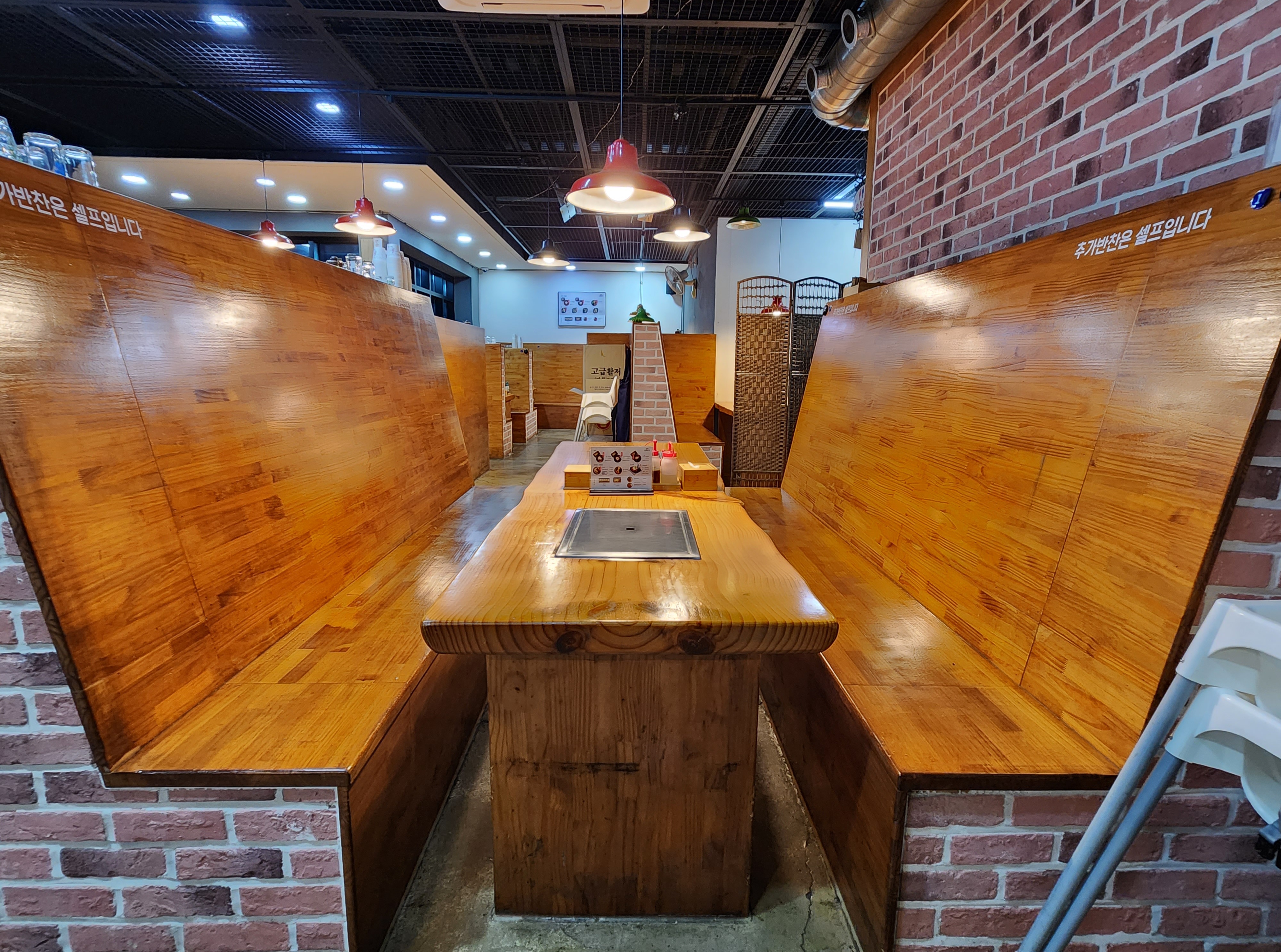 특히 실내는 테이블을 사이에 둔 의자가 높은 벽을 이루어서, 다른 테이블과의 칸막이 역할을 하더라구요