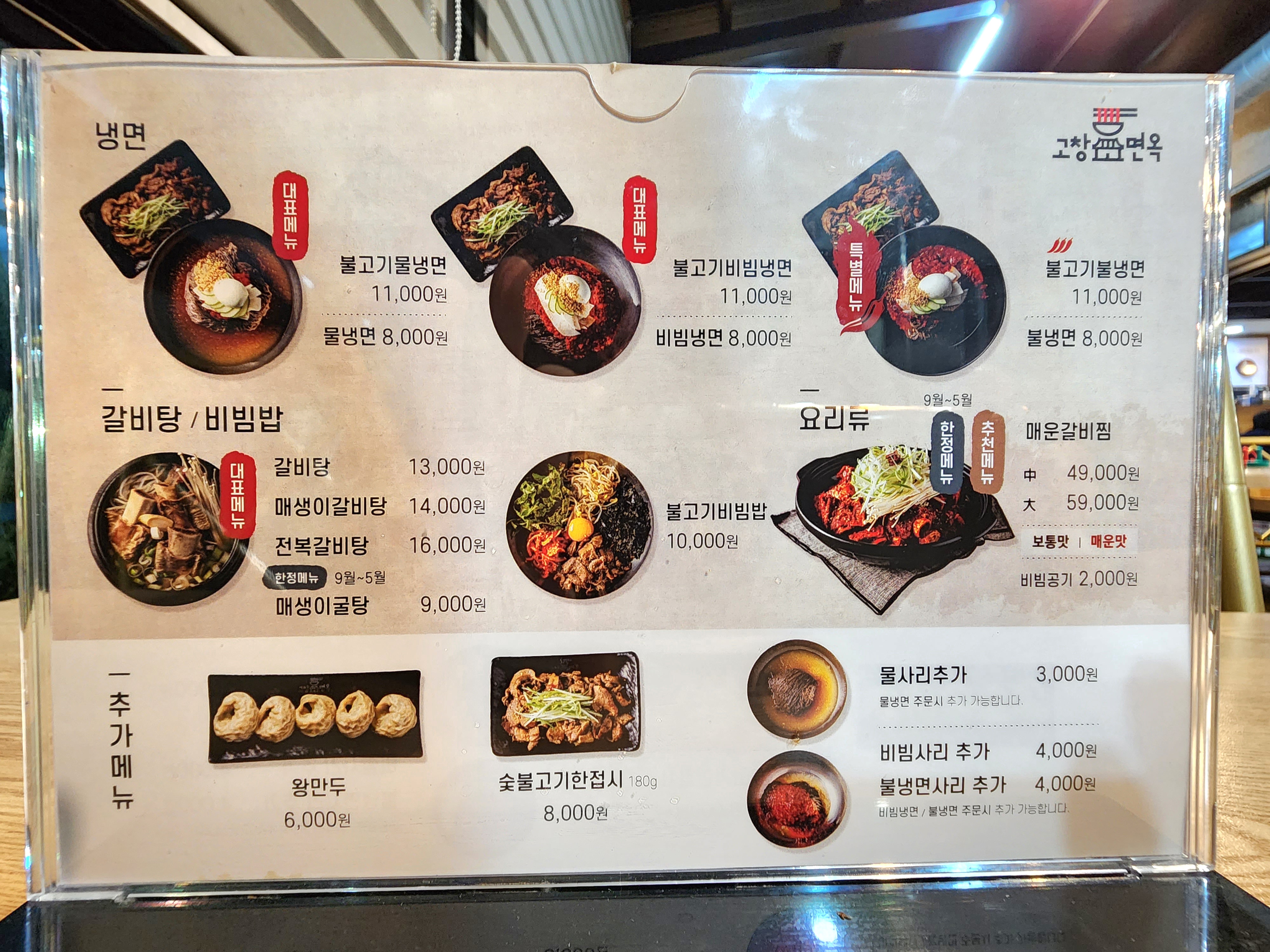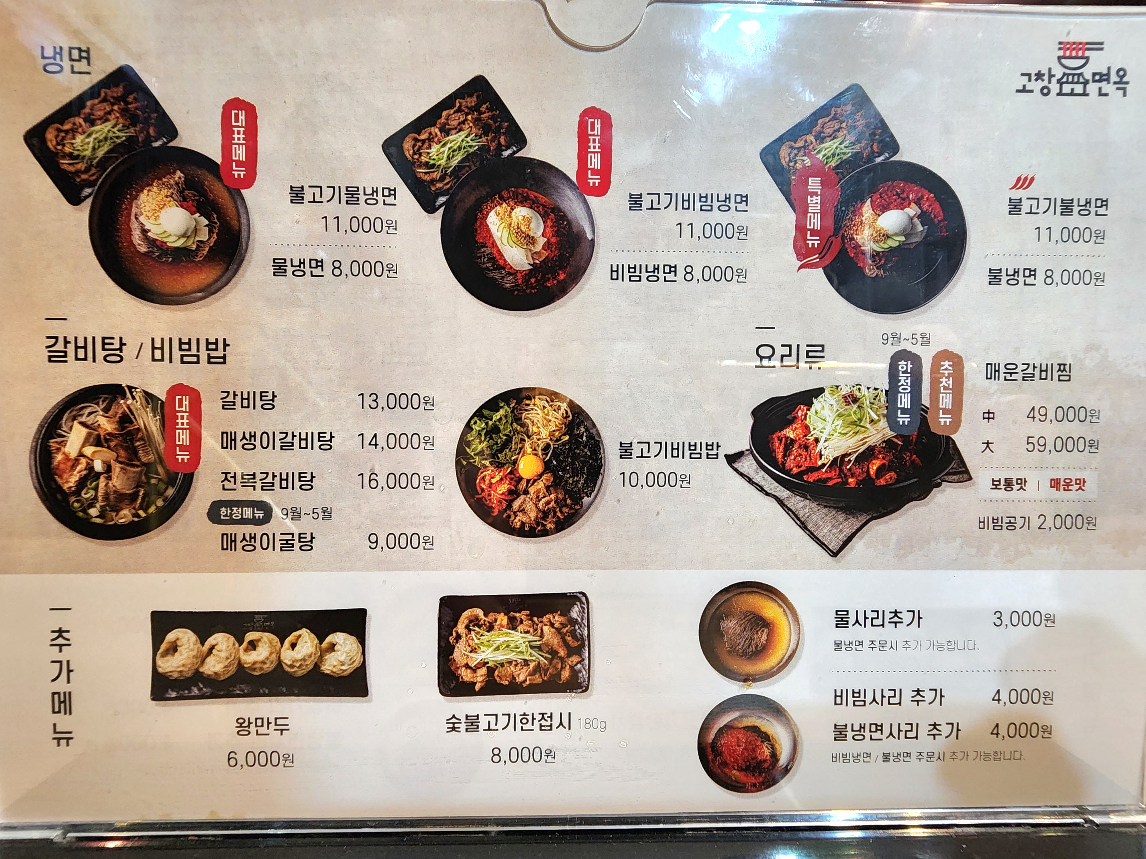 간단하게 정리해보면, 갈비찜/ 갈비탕/ 굴탕/ 냉면/ 비빔밥/ 만두 이정도였습니다