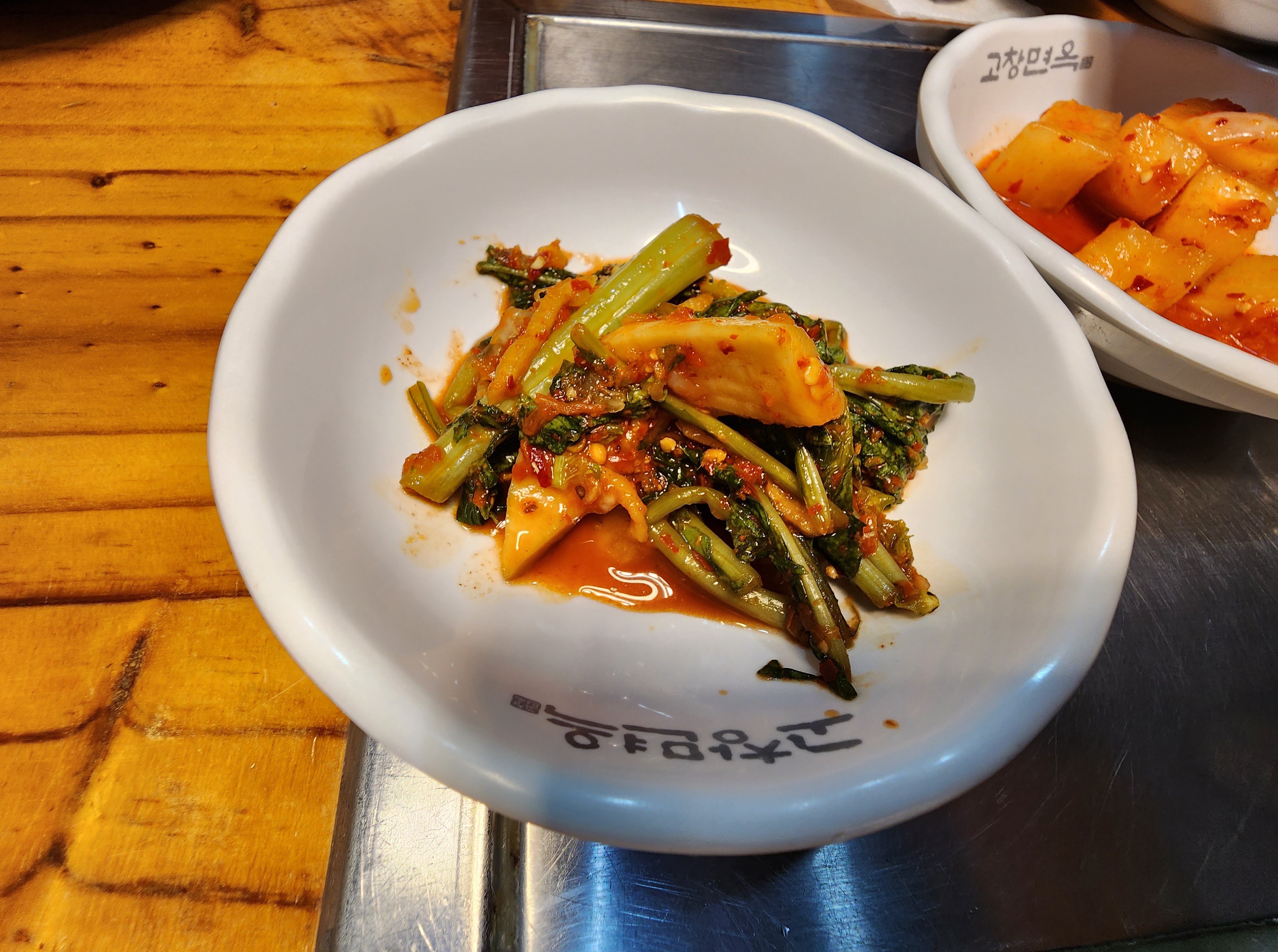 그 중에서 열무김치가 냉면과 세트인 밑반찬이고 깍두기랑 토하젓은 갈비탕 주문한 아빠 반찬이라고 하셨어요