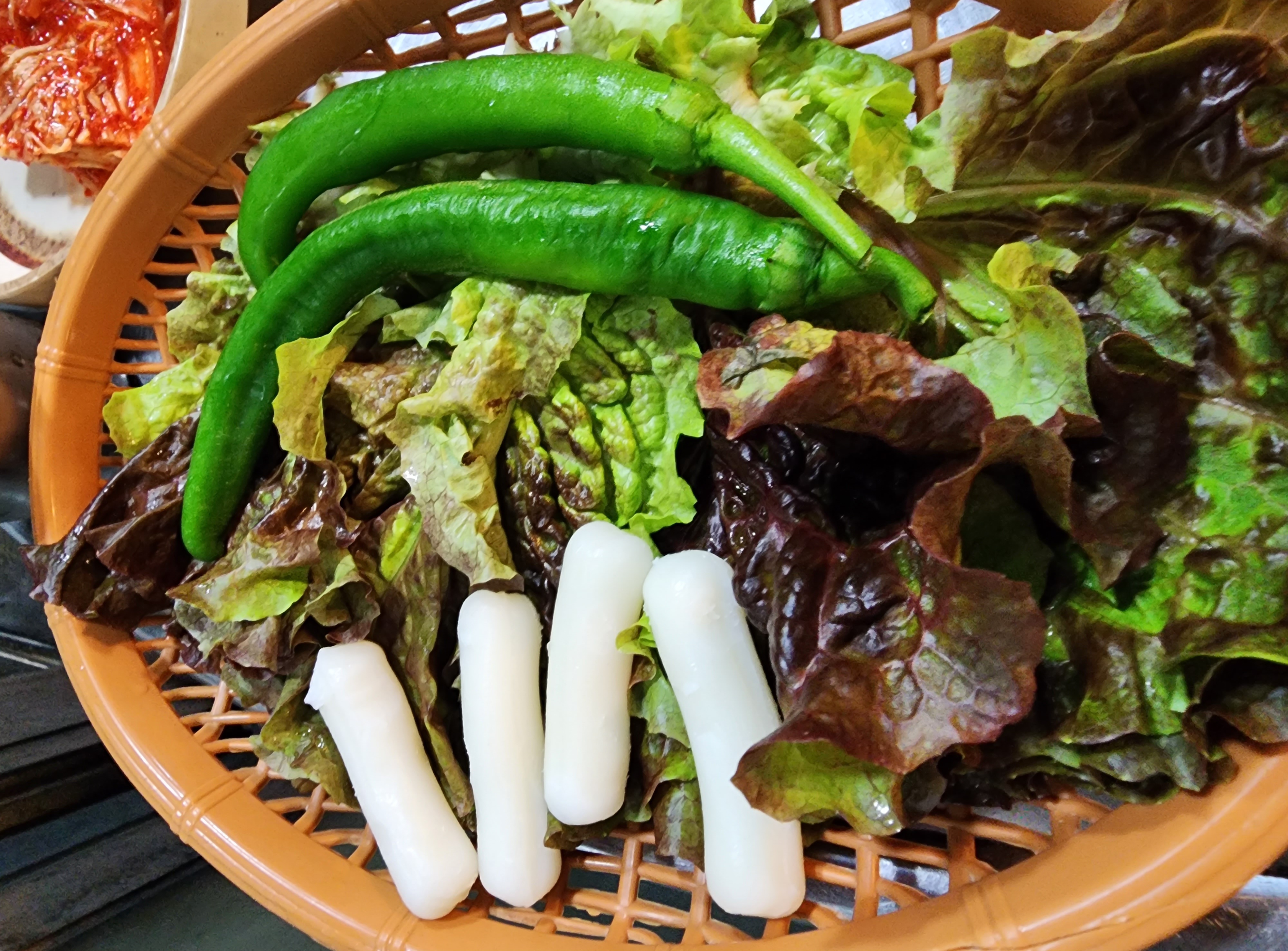 보통 사람들은 고기만 먹거나 쌈채소와 먹지만, 쌈채소에 밥을 얹어서 고기와 함께 먹었어요