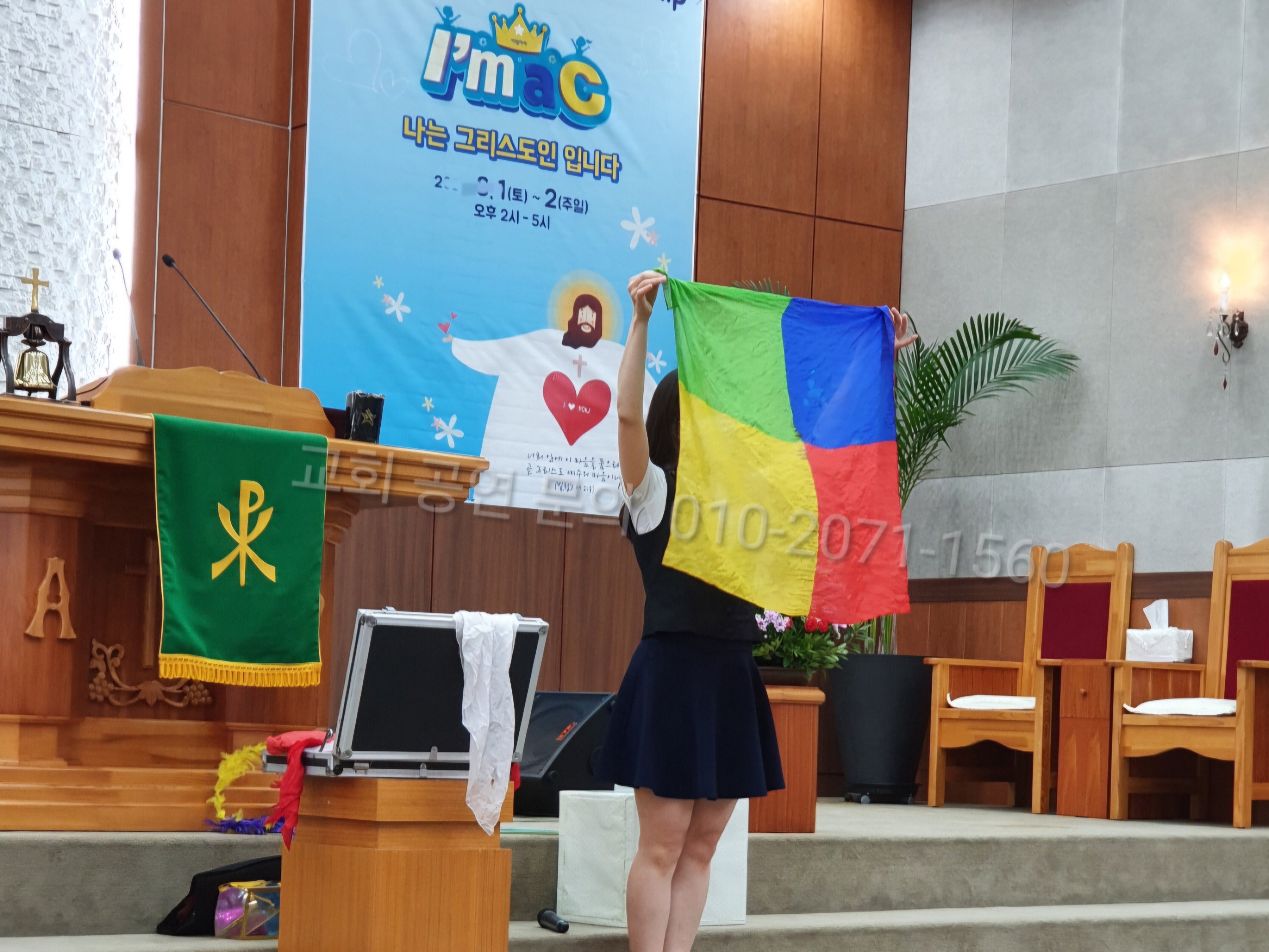 공연 중에, 아이에 대한 칭찬을 아끼지 않으면서, 교회 자랑을 해주면