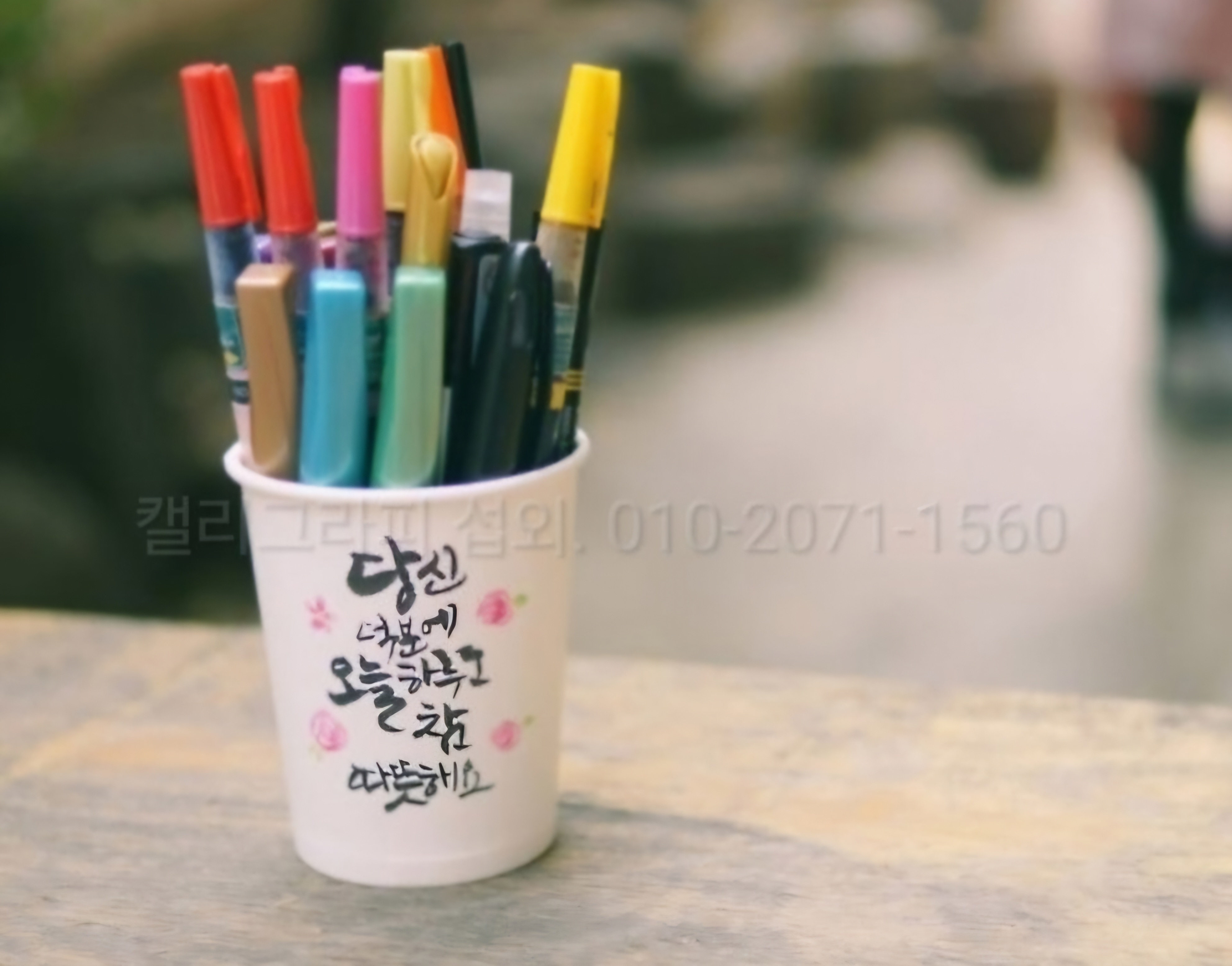 일상에서 긴밀하게 사용하는 사물에 캘리그라피 작품을 선보여서 나누어주니