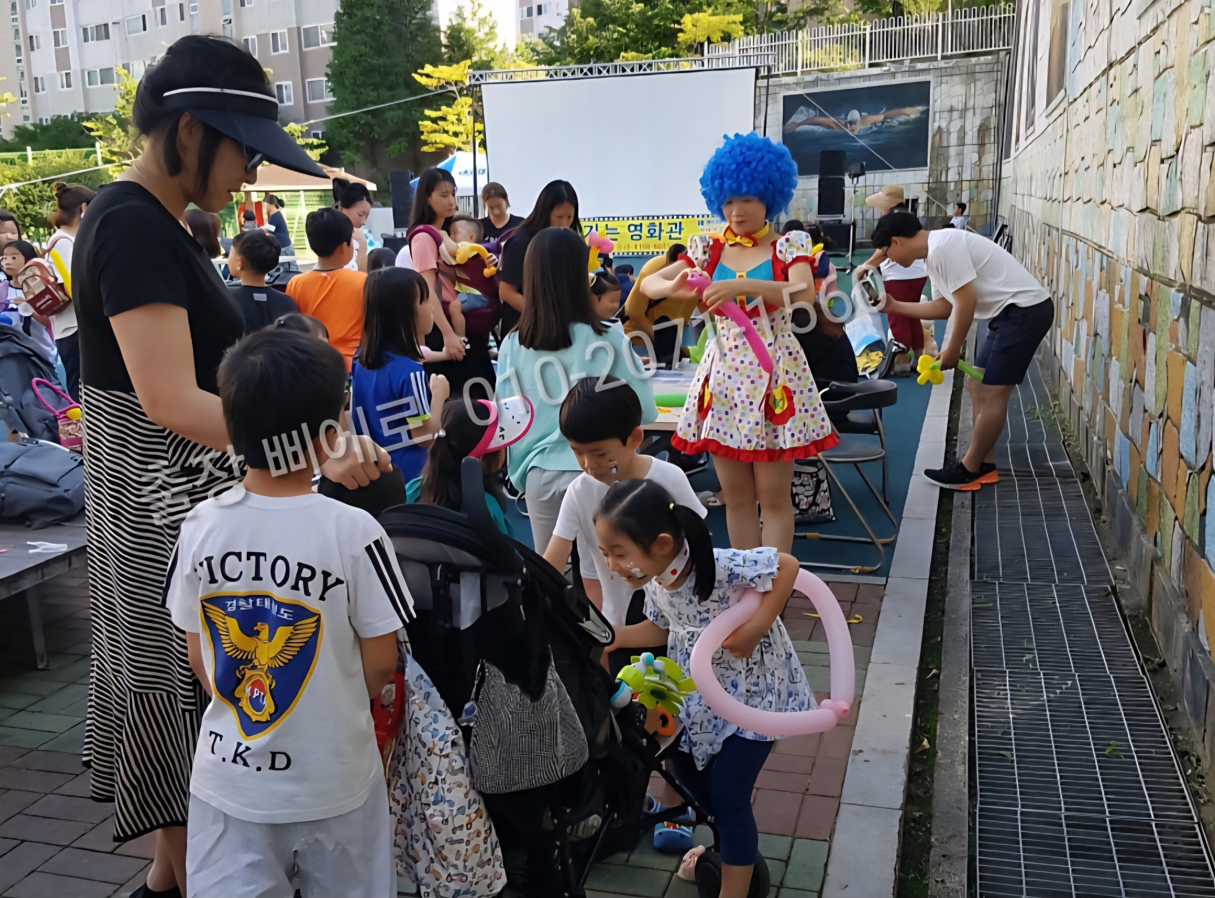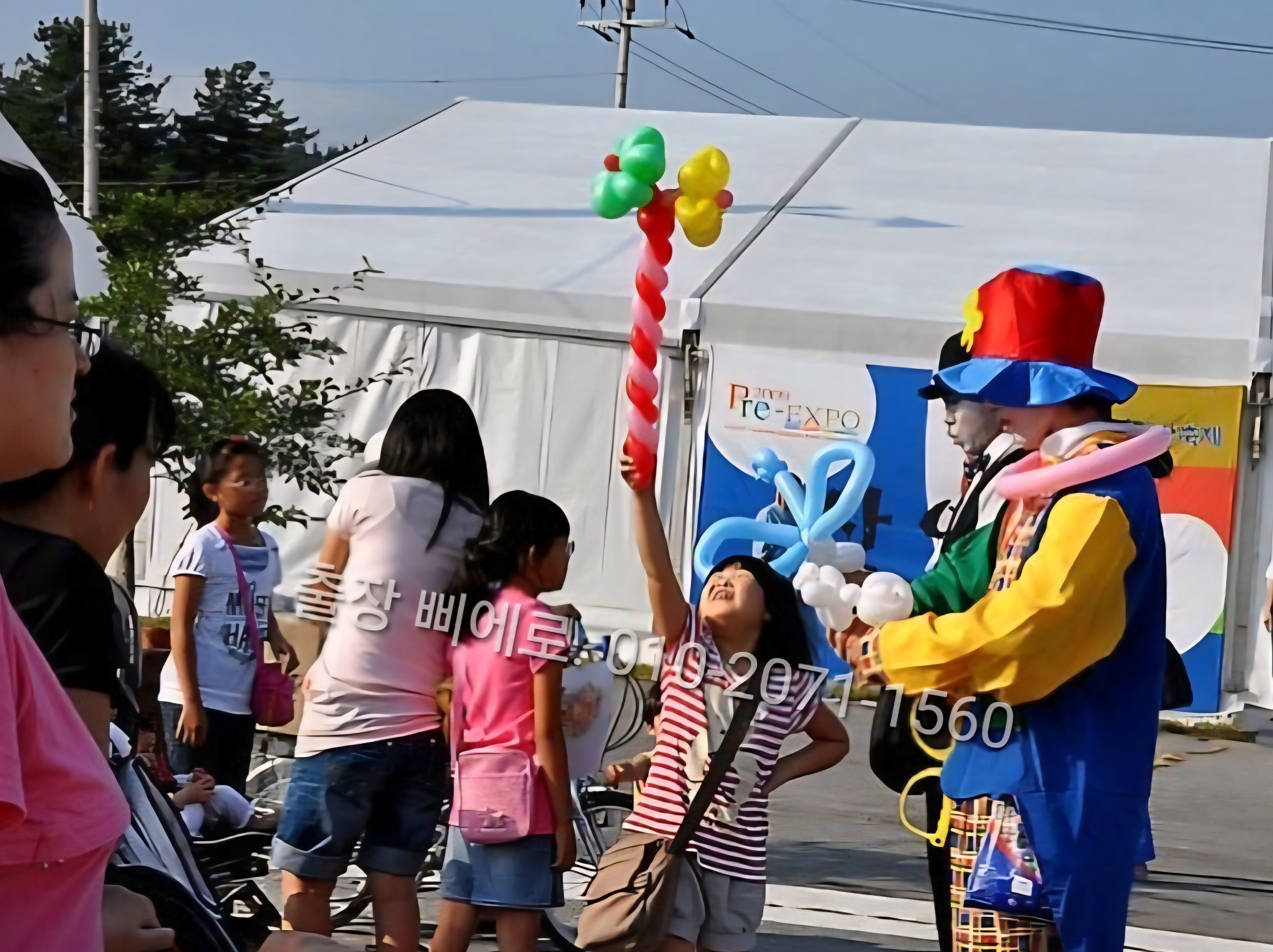 삐에로가 행사장 주변을 여기저기 돌아다니면서 사람들에게 풍선아트를 해줄 수 있는지