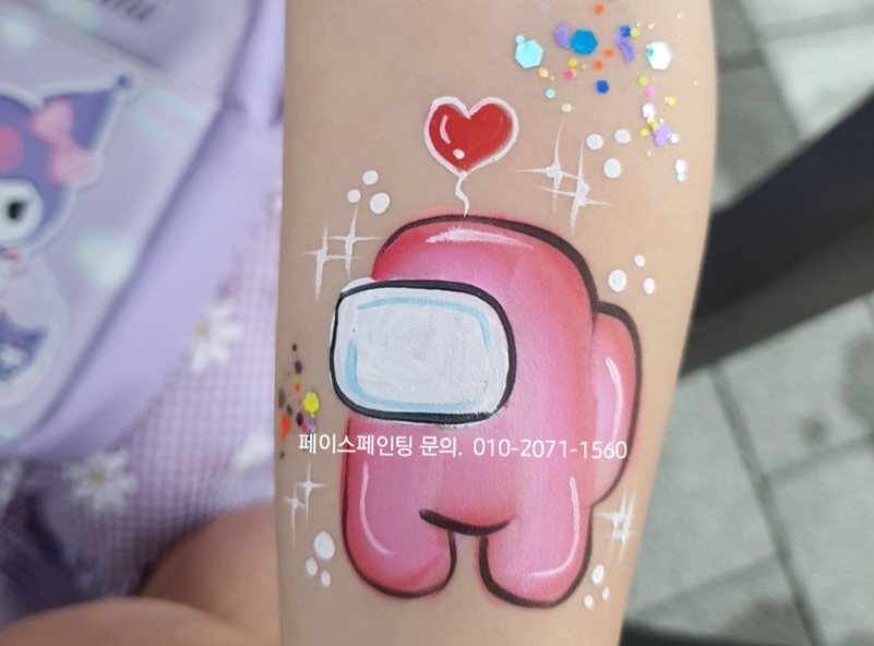한창 유행하는 만화 캐릭터를 피부에 그려주었을 때 아이들은 세상행복해하며 너무 즐거워하지요