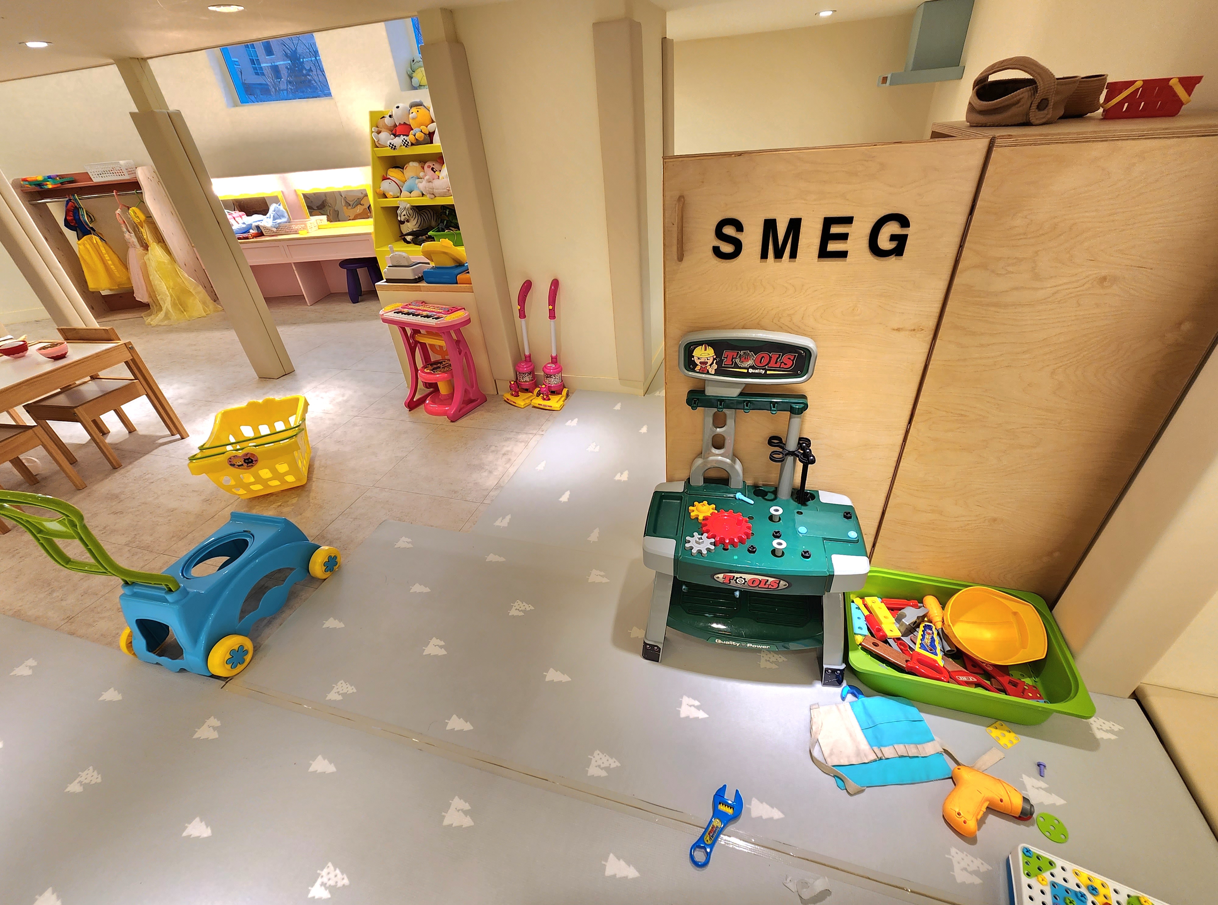 공간을 따라 안쪽으로 들어가보면 기둥 사이사이에 놀이 공간과 장남감들이 종류별로 잘 준비되어 있어요
