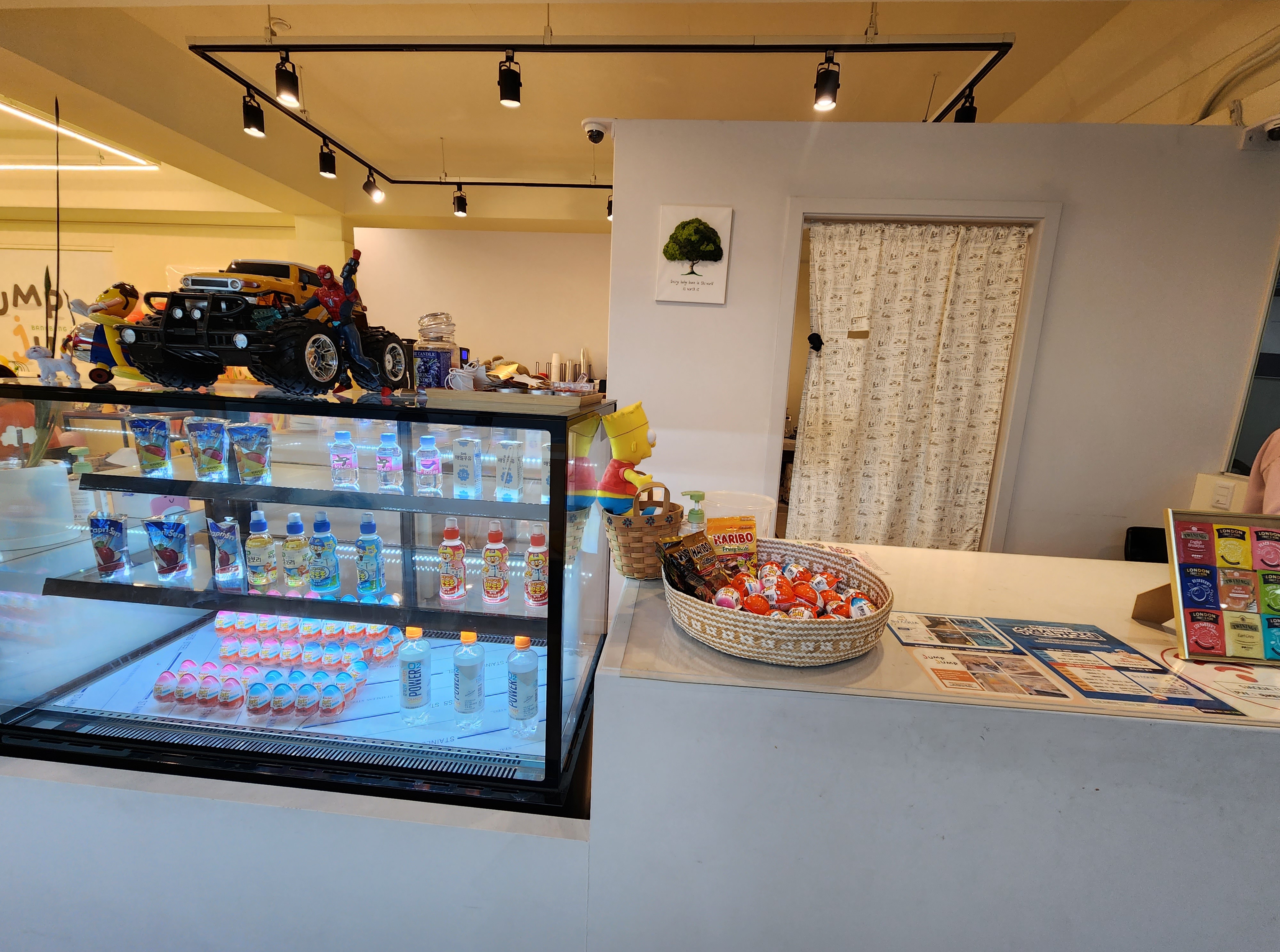 음료나 차도 준비되어 있고, 볶음밥이나 핫도그 등 간단히 먹을 수 있는 음식도 준비되어 있어요