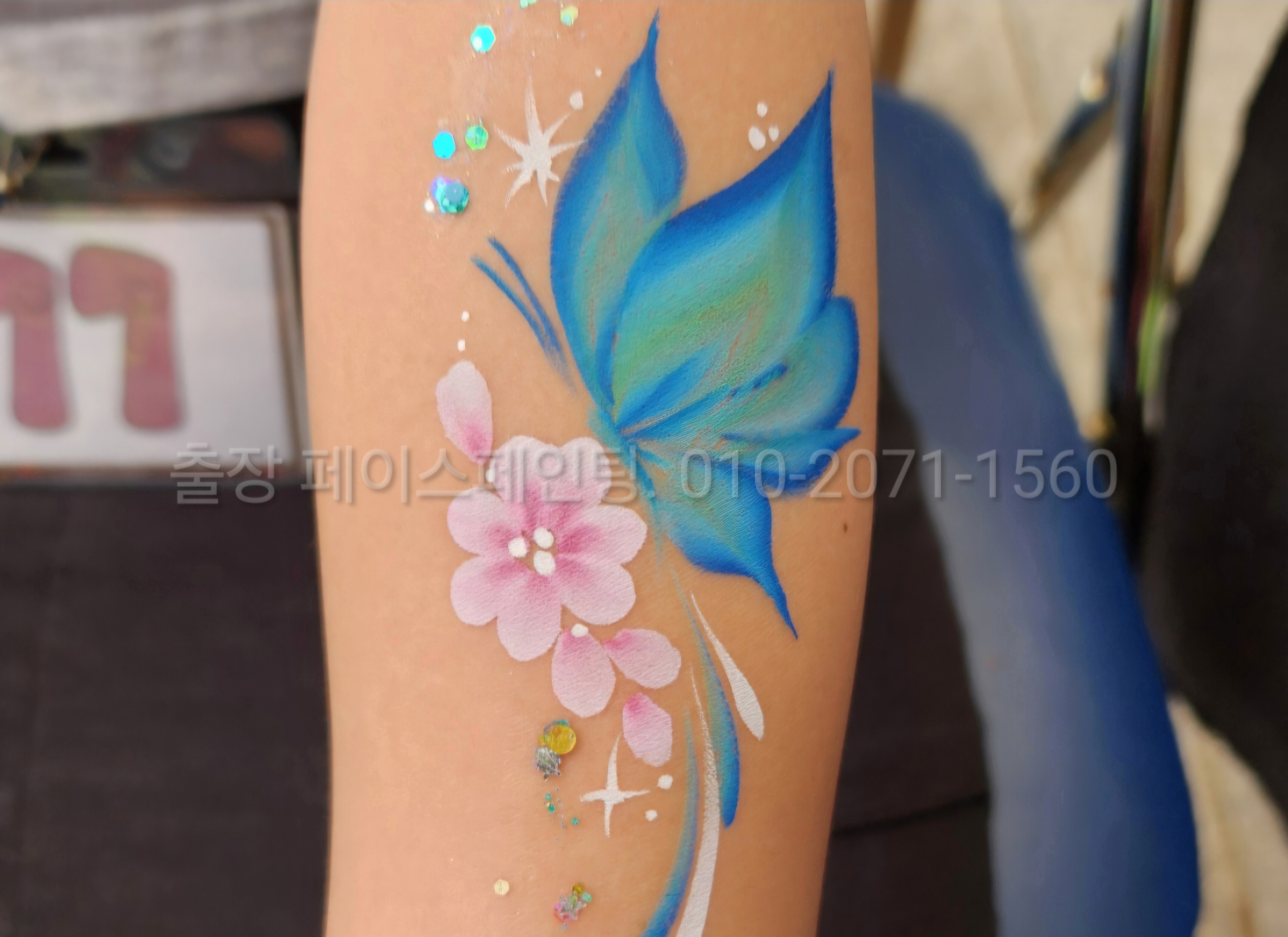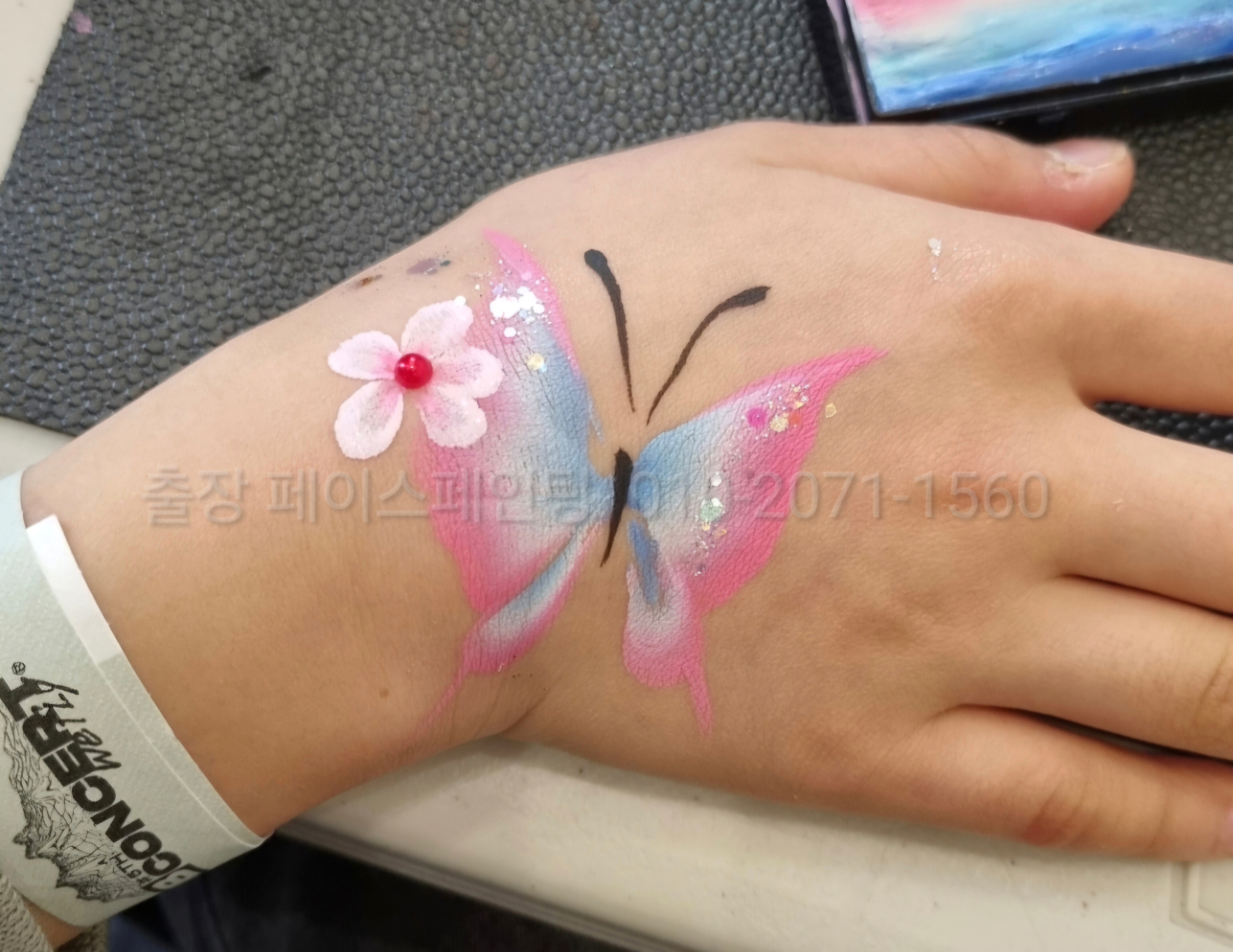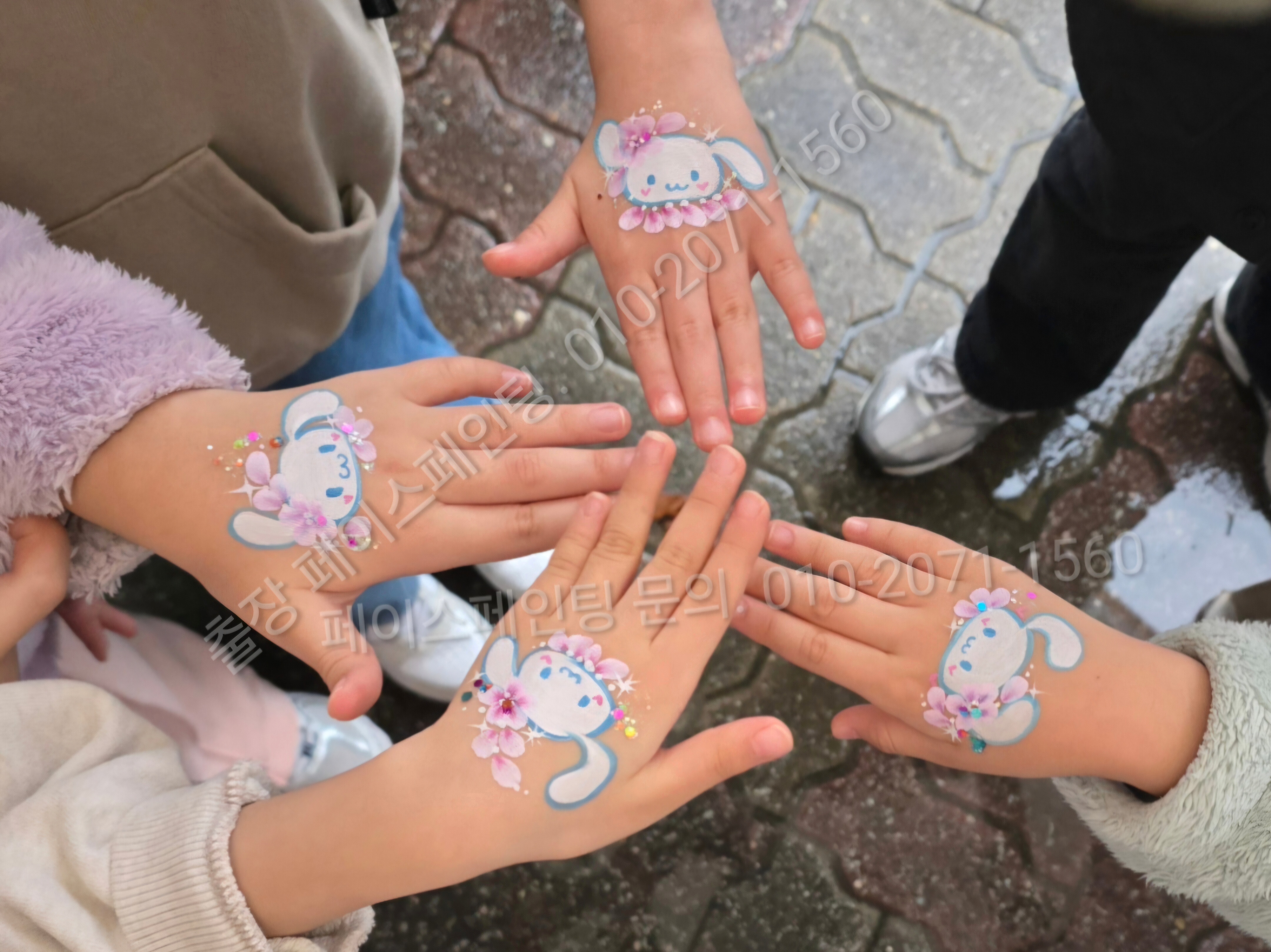얼굴에 그림을 그려주는 페이스페인팅은 얼굴 뿐 아니라 손이나 다른 위치에도 그리기도 합니다